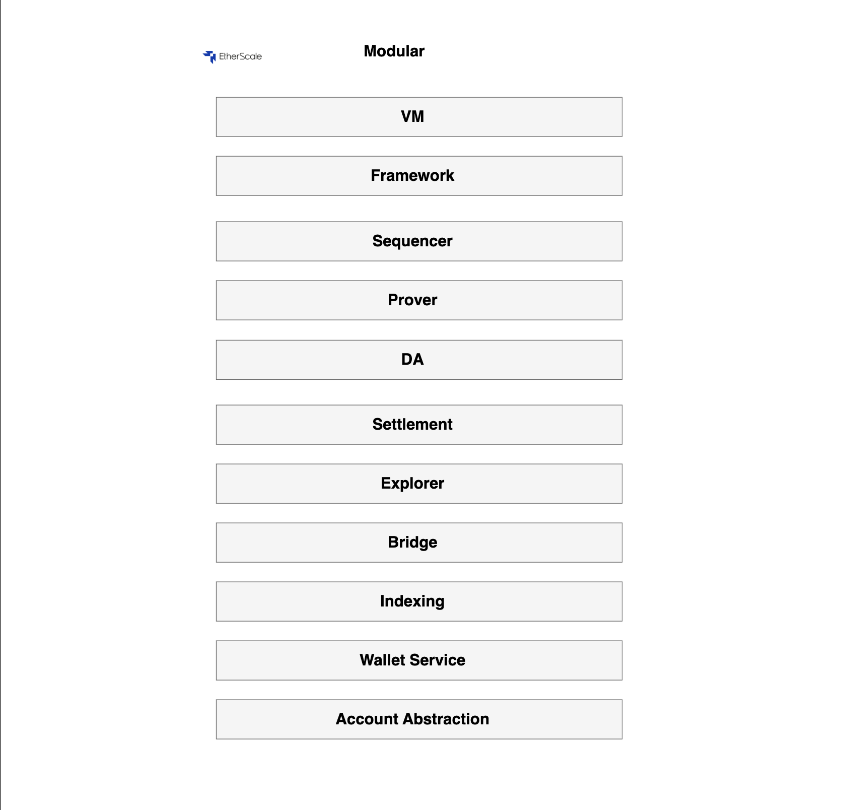 * EtherScale’s architecture is built on modular components that can be individually developed, replaced, and upgraded without affecting the entire system.